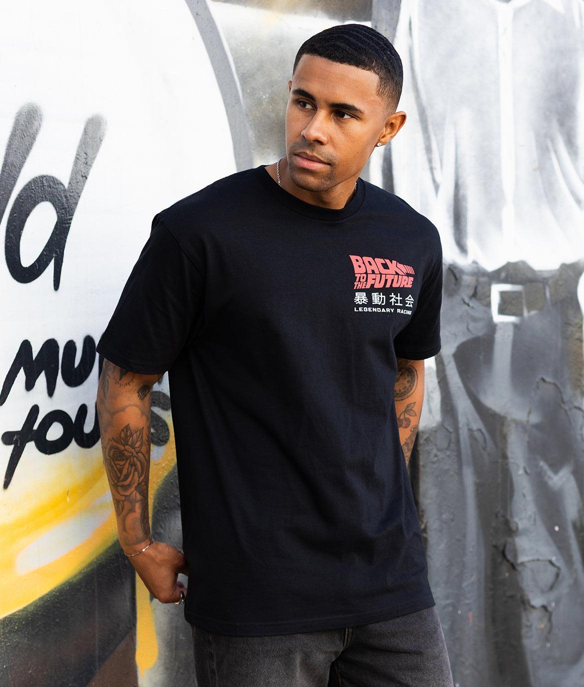 Fuel your nostalgia and hit 88 MPH in style. This graphic tee pays tribute to Back to the Future with a high-octane racing aesthetic, blending retro sci-fi energy with streetwear style. With this tee, you'll feel like you're powered by the Flux Capacitor.