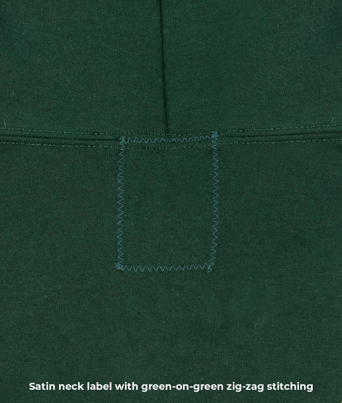 - Satin neck label zig-zag stitch behind hoodie