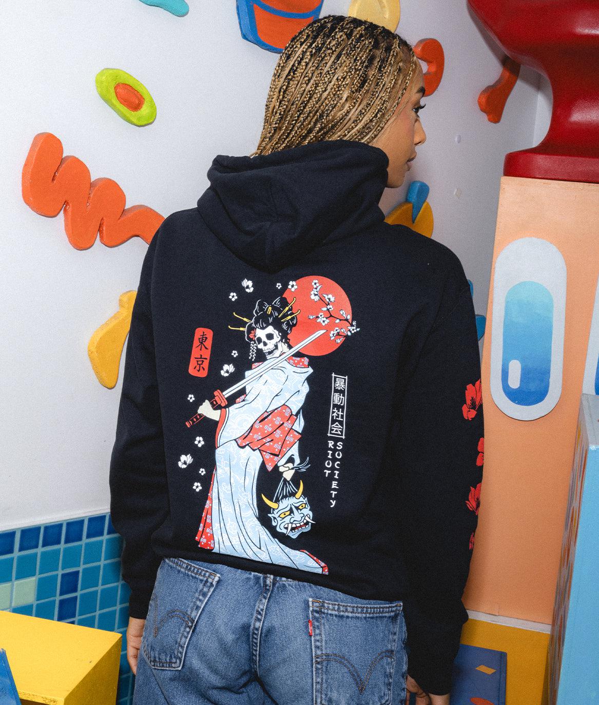 What's more fearsome than a samurai? A samurai geisha slaying demons. If looks could kill then this geisha is prepared to kill anyone who looks her way. This hoodie is the perfect blend of a killer yet beautiful design. Slay those demons and your outfit with this hoodie!