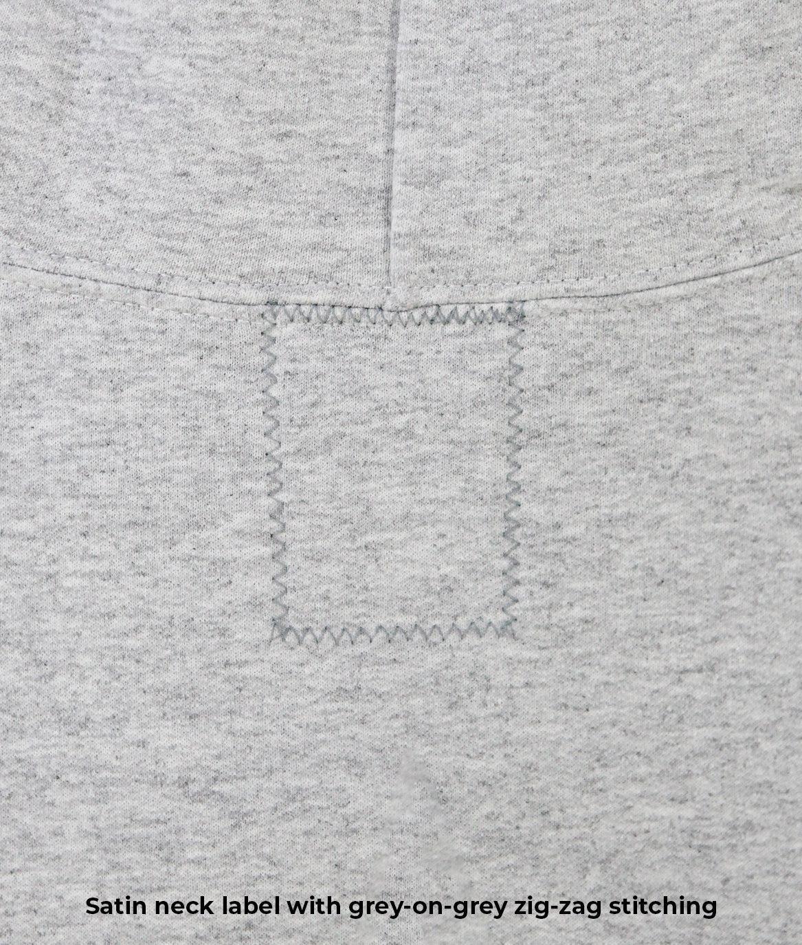- Satin neck label zig-zag stitch behind hoodie