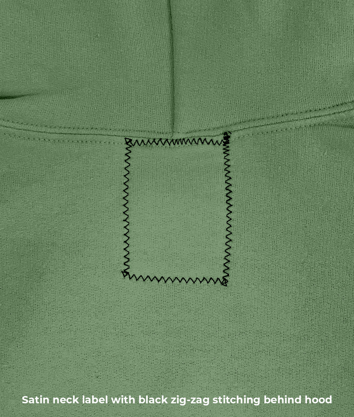 - Satin neck label zig-zag stitch behind hoodie
