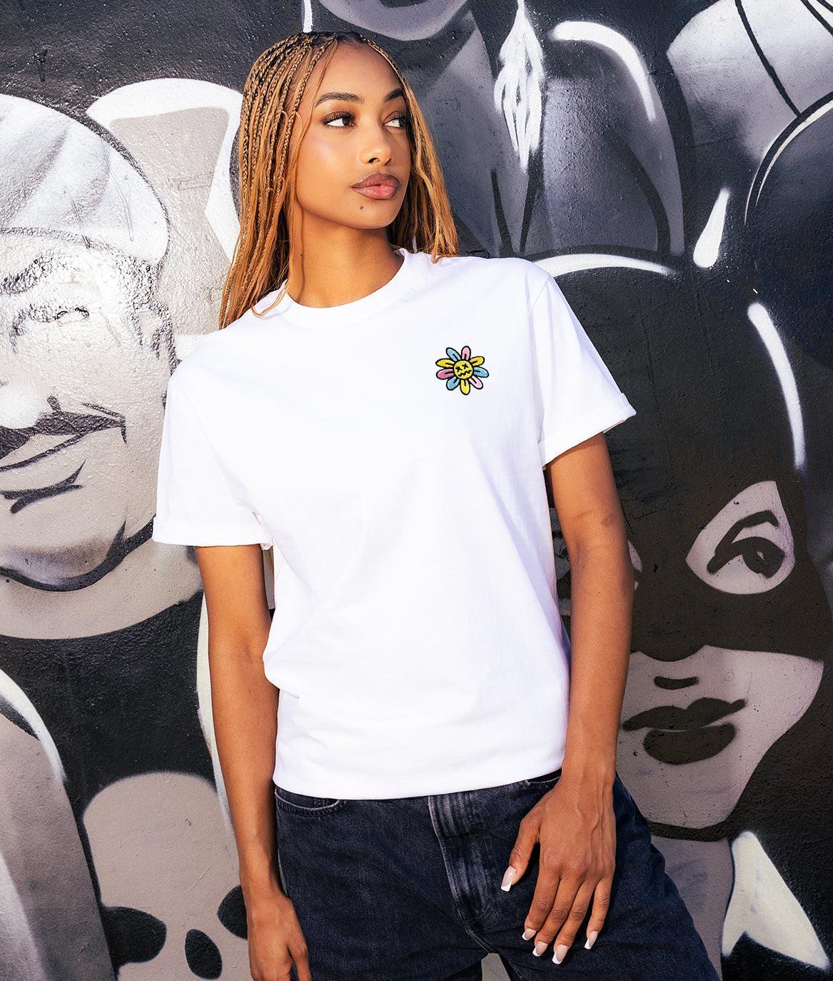 Turn heads with a flower that’s feeling some type of way. The Woozy Face Flower tee features a trippy embroidered bloom that’s equal parts dashing and dazed. This tee brings low-key vibes with high-key energy. Whether you're chilling in the sun or spiraling in style, this one's got you covered. Stay cool, and stay weird!